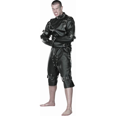 Luxusní kožená bondážní kombinéza pro BDSM a bondage na nejvyšší úrovni Těžký kožený catsuit s 3/4 nohavicemi, s poutacími řemeny, přezkami a oky. Svěrací kazajka ve stylu kombinézy. Horní část tvoří svěrací kazajka s klasickými zavřenými rukávy, které se spojují za...