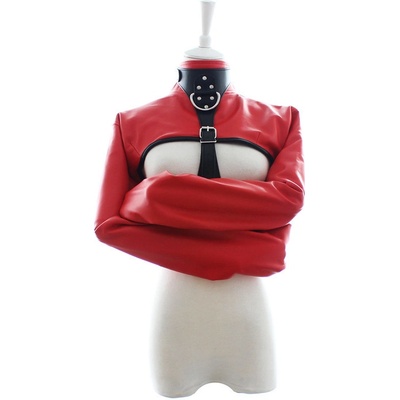 Svěrací kazajka Tato svěrací kazajka je pro svou velikost určena především ženám. Varování : bez pomoci druhé osoby se z kazajky nedostanete !!! Materiál: Horní vrstva - PU kůže Podšívka - satén Oka - kov Rozměry: Ramena 40 cm Délka rukávu 65 cm / horní obvod...