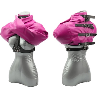 Svěrací kazajka Subordination Materiál: PU kůže Barva: černá (bílá a růžová – na dotaz) Přezky lze uzamknout (zámky nejsou součásti balení). Velikost: viz tabulka Dostupnost : velikost - A černá - skladem , A růžová - skladem , B černá - 14 dní , B růžová - 14 dní.