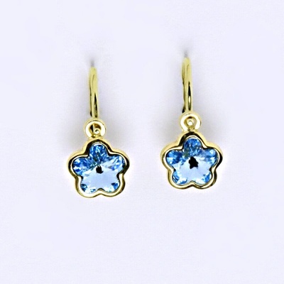 Tyto šperky - dětské náušnice kombinují klasické zapínání s moderním krystalem Swarovski. Orientační váha 1,10 g Zlato 14 ct 585/1000.Velikost náušnice na výšku 14 mm.
