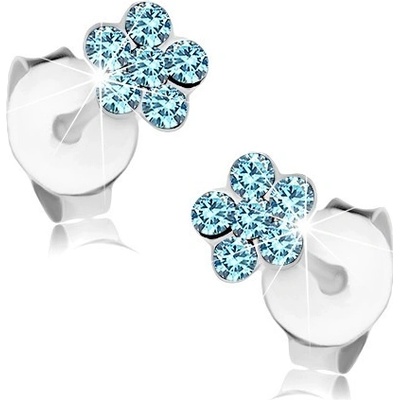 Třpytivé náušnice, stříbro 925, malý kvítek ze šesti kulatých krystalků Swarovski akvamarínové barvy.