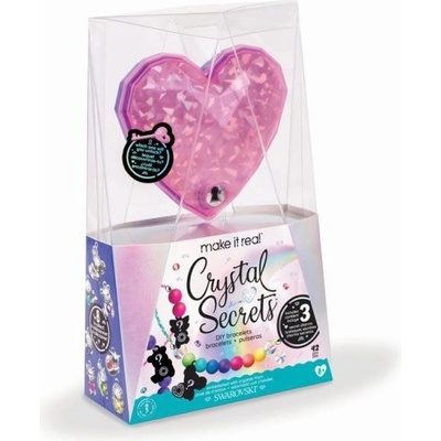 Balení obsahuje 3 náramky s přívěsky a krystalem SWAROVSKI, krabičku ve tvaru srdce, klíček, korálky, barevné šňůry a instrukce. Věk: 8+
