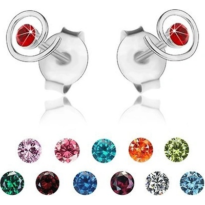 Puzetové náušnice, stříbro 925, tenká zatočená spirála zdobená krystalkem Swarovski.