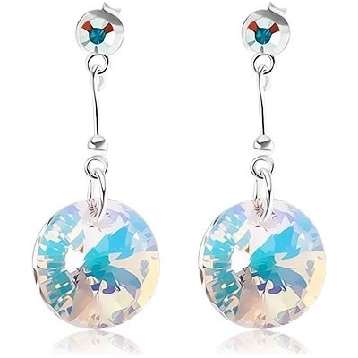 Náušnice ze stříbra 925, kulatý duhový krystalek, světle žlutý kulatý Swarovského krystal s barevnými odlesky.