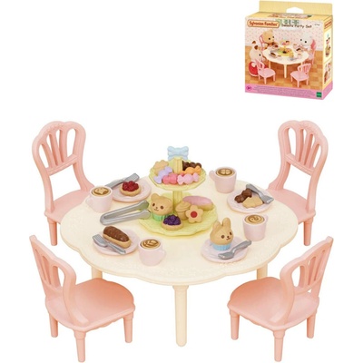 Sylvanian Families Party herní set, součástí kuchyňský jídelní stůl, židle, nádobí a makety potravin. Tento herní set se skládá ze stolu, čtyř židlí, nádobí a pochoutek pro 4...