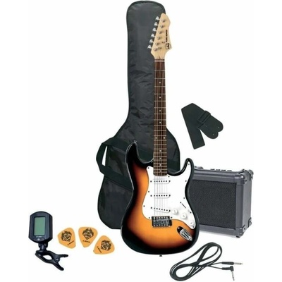 Elektrická kytara pro začátečníky v praktické sadě. Rozezněte kytaru v plné parádě v pohodlí domova. Sada obsahuje barevnou E-kytaru s popruhem, 3mm polstrovaný obal na kytaru, klipovou ladičku, 3 tvrdá trsátka, náhradní struny a 6.5" 10 W zesilovač s propojovacím...