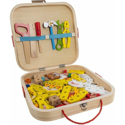 Tato barevná dřevěná sada nářadí je ideální hračkou pro malé kutily a kutilky! V krásném dřevěném kufříku najdete nářadí, ozubené šrouby a díly zvířátek, které si děti mohou...