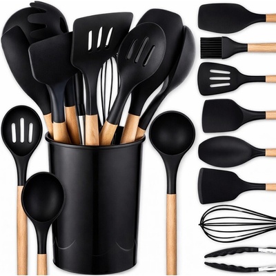 Sada kuchyňského náčiní Ruhhy 21804 VELKÁ SADA – celá sada se skládá z 12 kusů. 11 kusů náčiní a stojánku. Každý nástroj má jiné použití. Jsou zde lopatky, naběračky,...