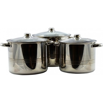 6dílná sada nerezových hrncůSada obsahuje 3 hrnce různých velikostí a 3 skleněné poklice s otvorem pro únik přebytečné páry. Hrnce jsou vyrobené z nerezové oceli s odolným...