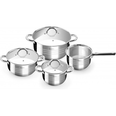 Sada nerezových hrnců HENRY, 8ks, Sada obsahuje: 1x hrnec s poklicí 16 x 8,5cm; obj. 1,7 l, 1x hrnec s poklicí 18 x 9,5cm; obj. 2,4 l, 1x hrnec s poklicí 20 x 10,5cm; obj. 3,3...