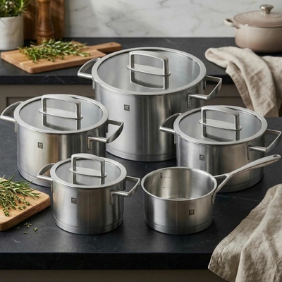 Sada nerezových hrnců ZWILLING VITALITY SET/5ks O produktu: Sada hrnců 5 ks ZWILLING® VITALITY obsahuje: 1x Hrnec 16 cm s nerezovou poklicí, objem 2l (66463-160) ...