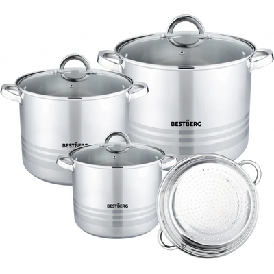 BestBerg 7dílná sada nerezových hrnců BBSC-3S / stříbrná