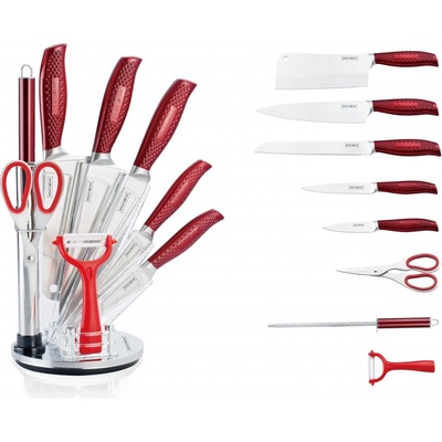 - dokonale praktická sada celkem 12ti kusů kuchyňského vybavení a nožů ve stojanu s brouskem - stojan je navržen jako blok na nože se sloty na 6 kuchyňských nožů, přihrádkou na...