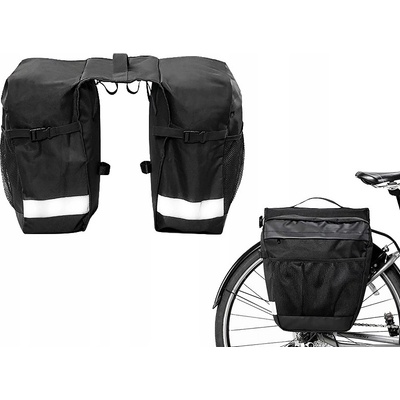 rozměry: délka 25-33cm, výška 35cm, šířka jedné brašny 16cm, celková šířka 48cm materiál :polyester 2 hlavní boční zipové kapsy a 2 síťované boční kapsy reflexní prvky + textilní madlo na manipulaci s brašnou objem:28l hmotnost: 580g