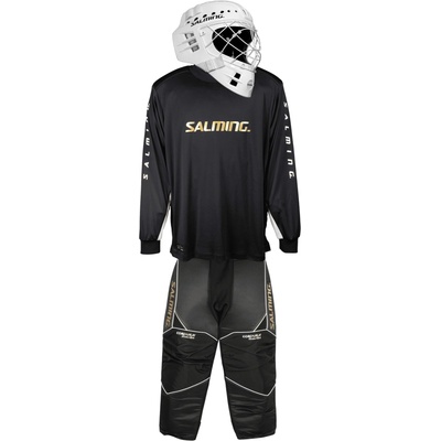 Salming Brankářský set React black/red + maska Salming Phoenix Elite Helmet White Shiny