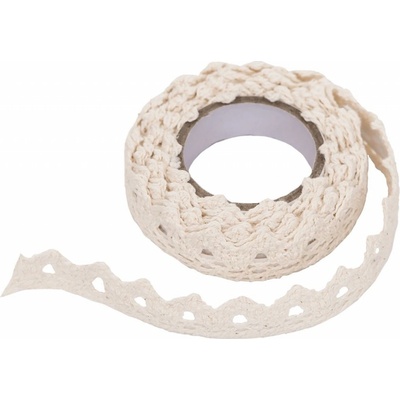 Samolepicí stuha ve formě bavlněné krajky, z jedné strany pokrytá lepidlem, což usnadňuje aplikaci. barva: krémová šířka: 15mm návin: 1,8m Cena za jeden kus.
