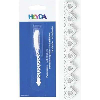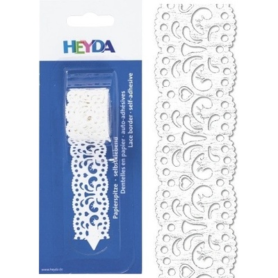 Papírová lepicí páska ve tvaru krajky značky Heyda je vhodná k různým druhům kreativních prací. Můžete ji využít ke zdobení svatebních oznámení, svatebních jmenovek, při balení...