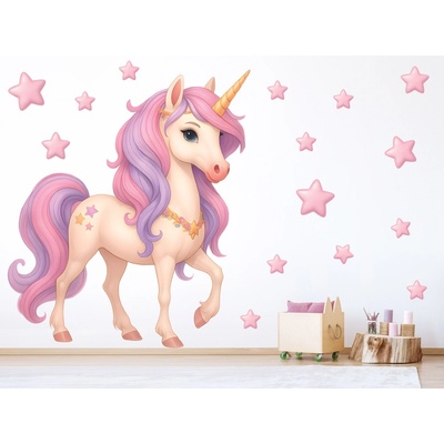 Samolepka na zeď „Růžový jednorožec“ promění každý dětský pokojíček v kouzelnou pohádkovou říši plnou něhy a fantazie. Jemné pastelové odstíny růžové, fialové a růžové vytvářejí...