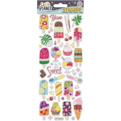 Samolepky s motivem zmrzlin. Můžete použít na vaše projekty např. scrapbooking, decoupage, výzdobu kartiček, bloků, diářů i na jiné aplikace. Rozměry archu:...