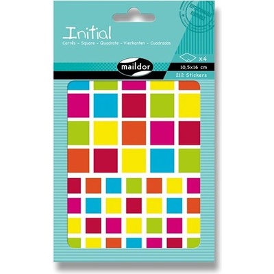 Samolepky Maildor Inital s různými barvami a velikostmi čtverců. Balení obsahuje 4 listy, 2 motivy po 2 ks - 212 samolepek. Samolepky lze sloupnout a znovu nalepit. Rozměry...