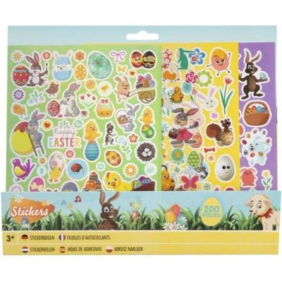 Velikonoční samolepky, 200 ks, 4 archy různých motivů. Zajíček, kuřátko, ovečka, kytička, beruška nebo raději barevné vajíčko? Přejeme vám krásné a barevné Velikonoce!
