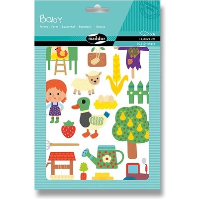 Samolepky Maildor Baby velké velikosti pro snadnou manipulaci s dětskými motivy zvířátek z farmy. Balení obsahuje 6 listů, 2 motivy po 3 ks - 102 samolepek. Samolepky lze...