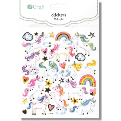 Samolepky DPNK-029 jednorožci - 31 ks papírových samolepek, velikost samolepky cca 4 cm, rozměr archu 15 x 17 cm