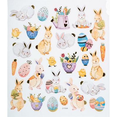 Roztomilé velikonoční papírové samolepky se zajíčky a velikonočními vajíčky. Všechny samolepky jsou částečně pokryty metalickými, zlatými dekoracemi. Tyto roztomilé samolepky...
