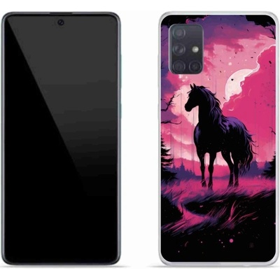 Pouzdro s motivem koně na Samsung Galaxy A51 - černý kreslený kůň 1 poskytuje všechny výhody gelových krytů, a to v zajímavém designu. - Účinně chrání strany i záda...