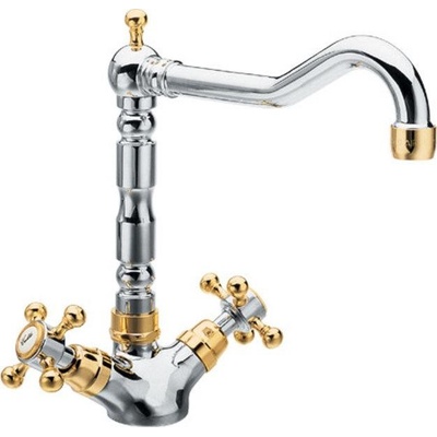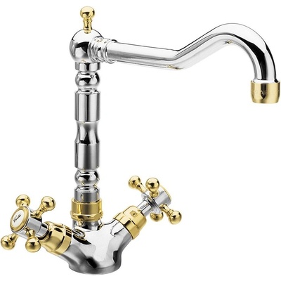 ANTEA stojánková dřezová baterie s retro hubicí, chrom/zlato