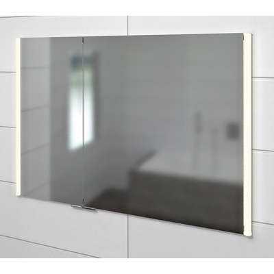INTEGRA galerka - zápustná zrcadlová skříňka s LED osvětlením2x oboustranná zrcadlová dvířka s lepeným pantem na vnitřním zrcadle3 výškově nastavitelné skleněné police v každé částikorpus lamino Titan aluvertikální LED osvětlení v hliníkovém profilu se stínidlemmléčné...