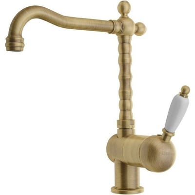 Dřezová stojánková baterie s retro hubicí - ramínko baterie je otočné - bronzové tělo, bílá keramická páčka - připojení k přívodu vody 3/8" Vodovodní baterie Kirké se svým designem řadí mezi baterie, které můžete použít jak v moderní koupelně, tak i v koupelně...
