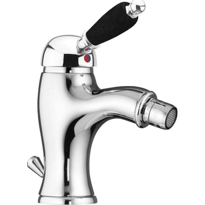 Páková bidetová baterie Kirké Black s výpustí, výška baterie 18,2 cm, materiál mosaz, černá keramická páčka, povrchová úprava chrom. KI03NC, KI03NC_UBC