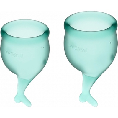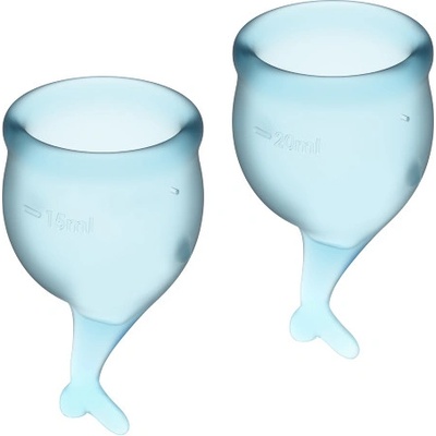 Satisfyer Feel Secure - sada menstruačních kalíšků s ocáskem (fialová) - 2ks Menstruační kalíšky na ty nejtěžší dny, s vytahovačem připomínajícím rybí ocas. Co je vlastně...