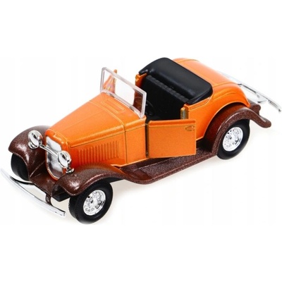 Autíčko Ford Roadster oranžové barvy v měřítku 1:34/39 značky Welly s plastovým podvozkem a kovovou karoserií.Model autíčka má kovové osy kol a detailní zpracování karoserie...