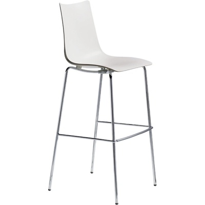 BAR STOOL ZEBRA BICOLORE - je dvoubarevná plastová barová židle. Přední strana skořepiny je bílá s lemem, zadní strana barevná s lomenným efektem. Podnož židle je ocelová...