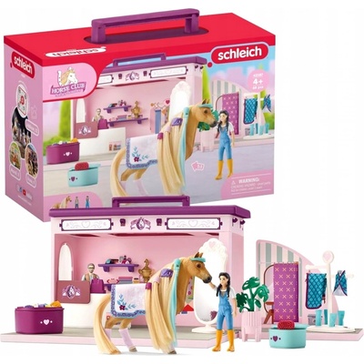 SCHLEICH HORSE CLUB OTOČNÁ STANICE PRO PÉČI O KONĚ FIGURKA SOFIA 42617 Stylizace koně a jezdce je společně lepší! Pečující stanice je vybavena kartáči, houbičky a vysoušečem...