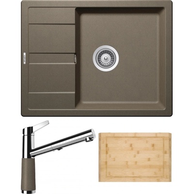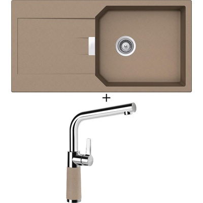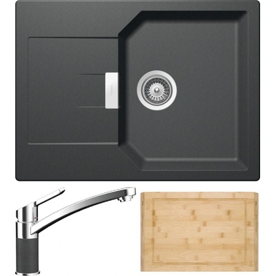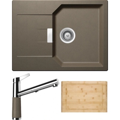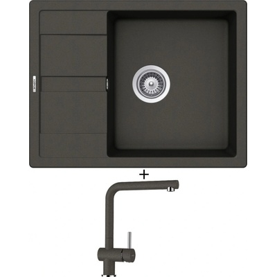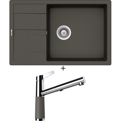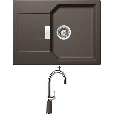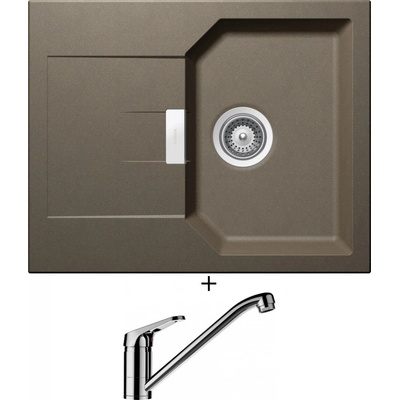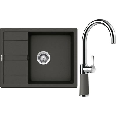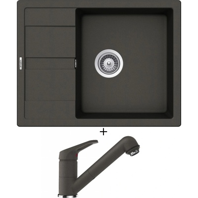 Cenově zvýhodněný set dřezu a baterie Schock S20-10 - obsahuje granitový dřez s odkapem Manhattan D-100 Asphalt a baterii SC-530 Asphalt.