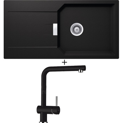 Cenově zvýhodněný set dřezu a baterie Schock S19-13 - obsahuje granitový dřez s odkapem Manhattan D-100S Asphalt a baterii se sprchou SC-540.120 Asphalt.