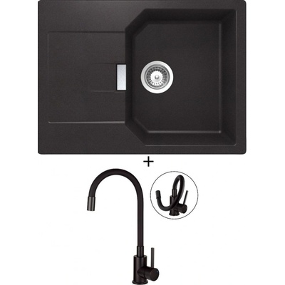 Cenově zvýhodněný set dřezu a baterie Schock S20-13 - obsahuje granitový dřez s odkapem Manhattan D-100 Asphalt a baterii se sprchou SC-540.120 Asphalt.