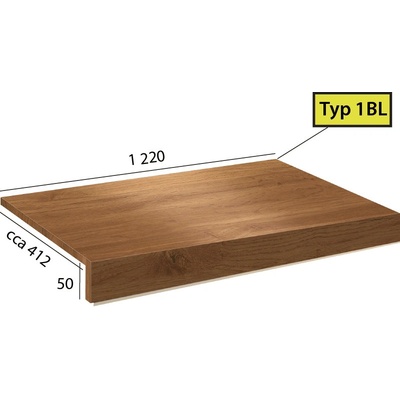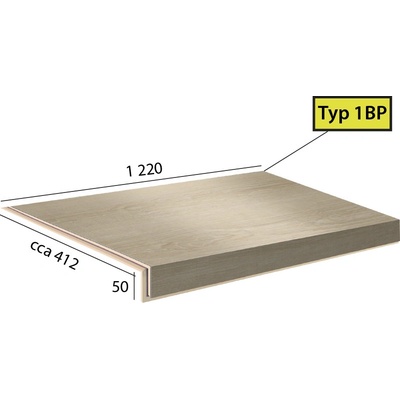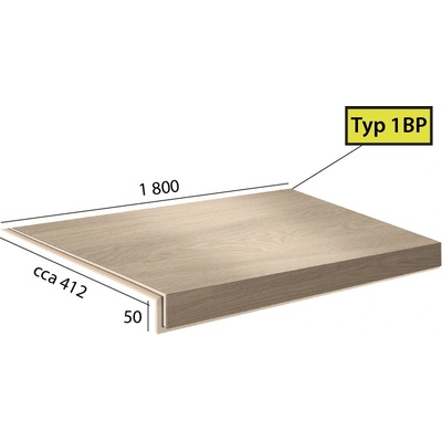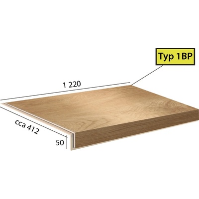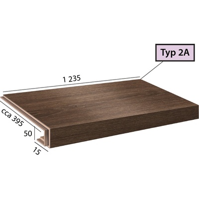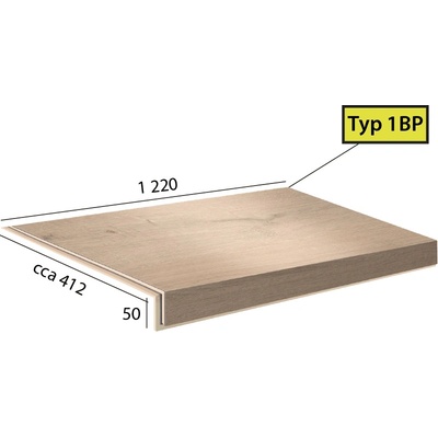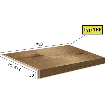 Vinylové schody Ecoline Step v dekoru 9502 Kaštan bělený, dílec 1BP - schod bez nosu s boční úpravou pro otevřené schodiště (zprava). Schody z vinylu jsou vyrobeny ve stejné...