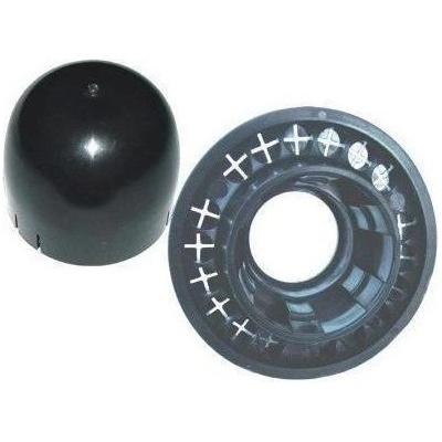 Dvoudílná zátka a krytka na stožárové trubky o průměru 38-50 mm. Zátka je zhotova z plastu a opatřena 18 otvory pro koaxiální kabely vedené ve stožáru.