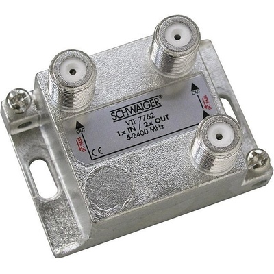 Dvojitý širokopásmový rozdělovač od značky Schwaiger je vhodný pro připojení k anténě, širokopásmovému kabelu i pro příjem satelitní televize. Má plně stíněné a připájené kovové...
