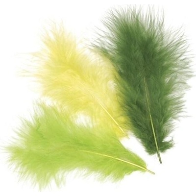 Dekorativní peříčka Marabu mix - světle zelená 15ks /10cm/