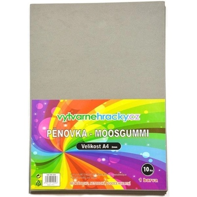 Pěnová guma - šedá 20 x 30 cm. Mechové guma A4 jednotlivé barvy. Velikost 20 x 30 cm, tloušťka mechové gumy 2 mm. Vhodné pro práci s dětmi a vyrábění dekorací, razítek,...