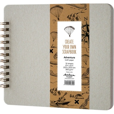 Album má přední a zadní obal z pevného kartonu, který se dá dozdobit. Obsahuje 12 listů kraftového papíru gramáže 300g/m2. Blok je kroužkový se zaoblenými rohy. Papír je vhodný...