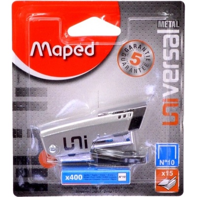 Malá kovová sešívačka se zabudovaným rozešívačem. možnost vizuální kontroly drátků kovový mechanismus hloubka vkládání papíru 40 mm integrovaný rozešívač drátky No.10 Maped...