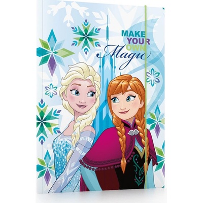 Kartonová sloha s motivem oblíbené pohádky Ledové království, na uchovávání dokumentů formátu A4, se zajišťovací gumičkou, 3 klopy.