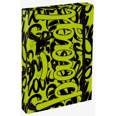 Box na sešity, knihy a další školní pomůcky ve formátu A4. Box je laminovaný, lesklý s vnitřními klopami a uzavíráním na gumičku. Šířka hřbetu: 4 cm
