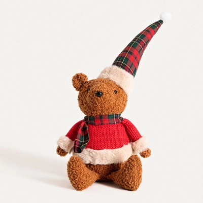 Oblečený v pleteném svetru s ovčí kůží - Čepice a šála se skotským kostkovaným vzorem - Vyrobeno z plyšového materiálu - Ideální jako dárek - Vánoční skřítek Mr Teddy v...
